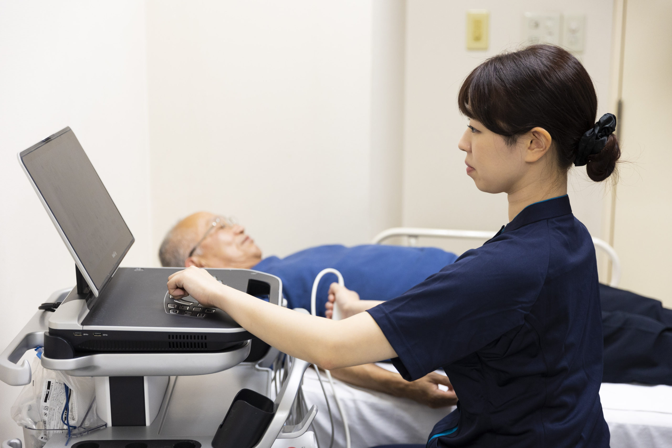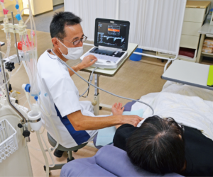 近年、長期透析患者さまの増加や患者まの高齢化に伴い、シャント専門病院への受診が困難になってきております。そこで、善仁会グループでは、2013年10月より各施設に超音波診断装置を持ち運び、シャントを検査する「巡回シャントエコー」の仕組みを構築いたしました。