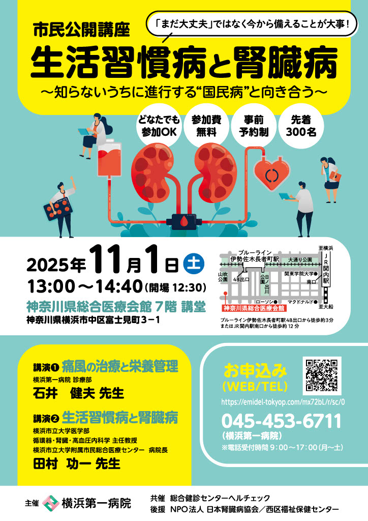 今回の市民公開講座では、生活習慣病と腎臓病の関係や、日常生活でできる予防法について、専門の医師がわかりやすく解説します。